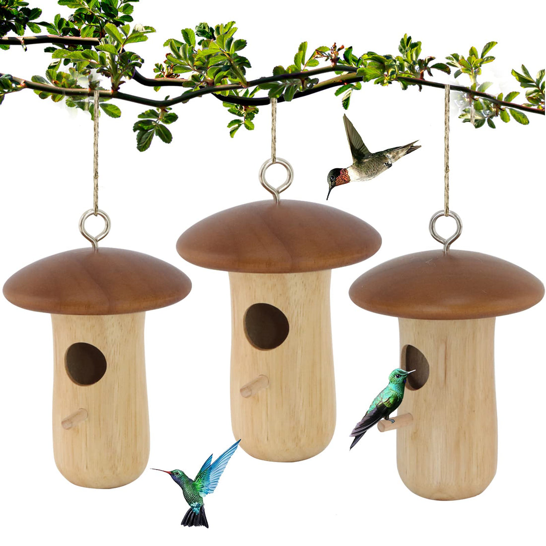 Natural Wood Hummingbird House - Handcrafted Garden Bird Shelter