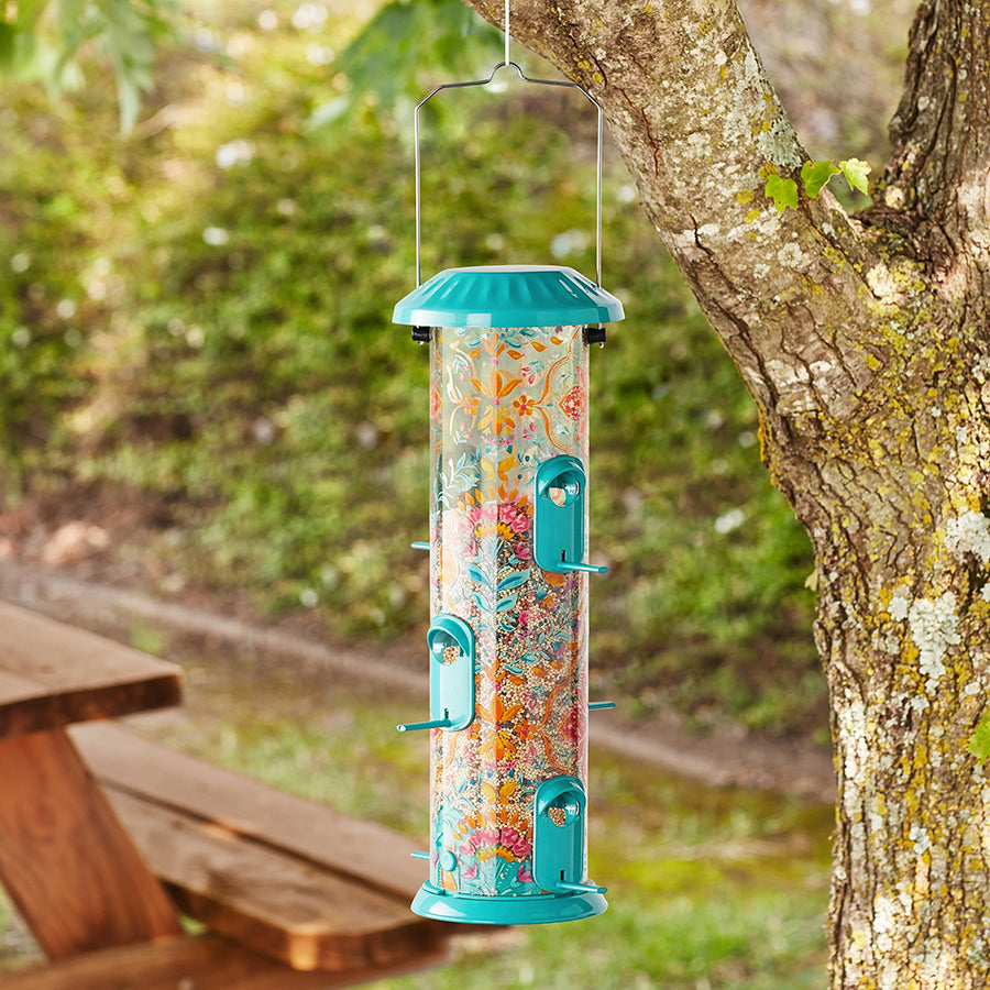The Pioneer Woman Folk Geo Plastic Deluxe Easy Clean Tube Bird Feeder