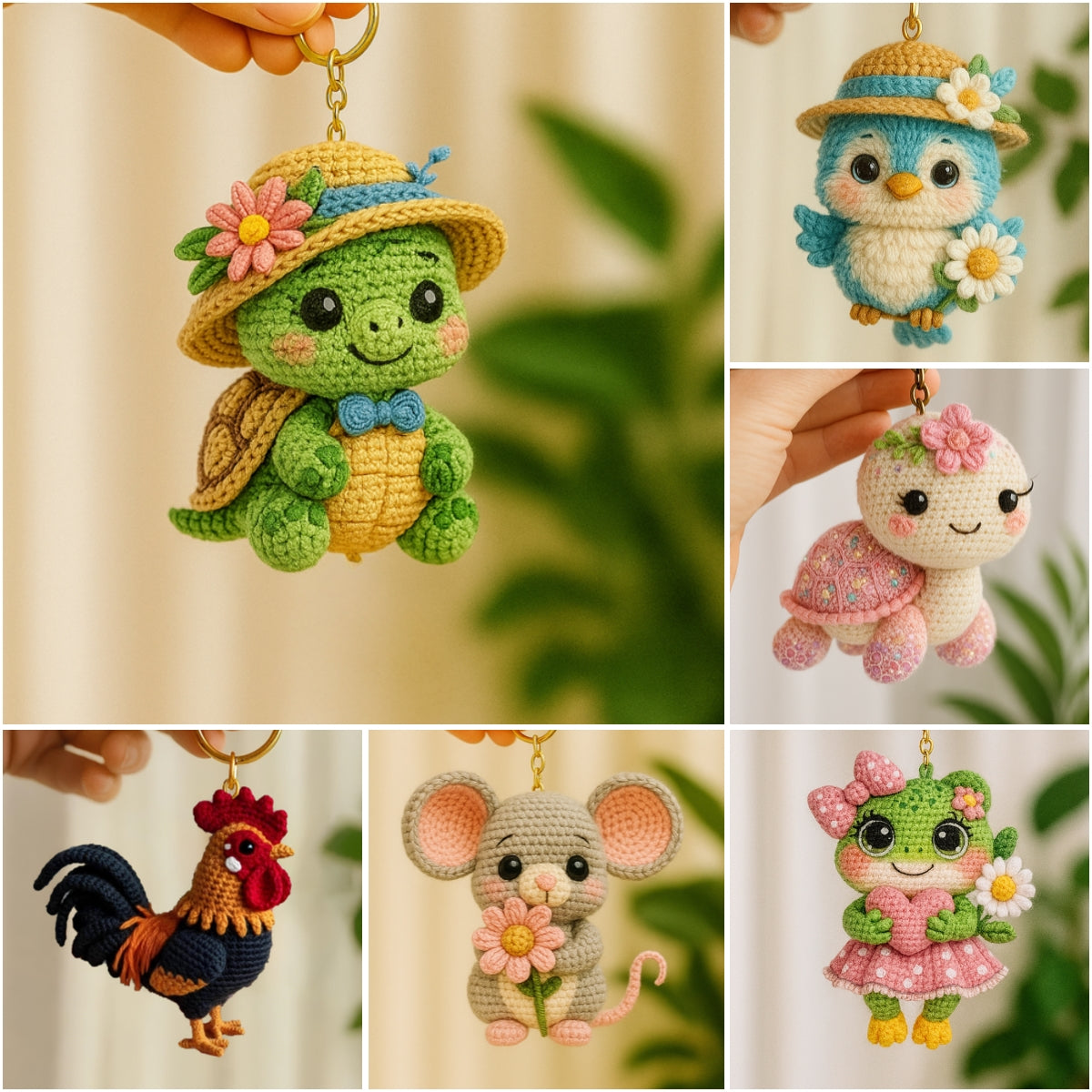 Enhance your accessories with these adorable crochet animal keychains, each charming piece brings delightful personality to your keys or bags.