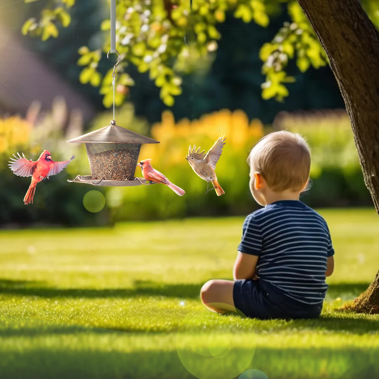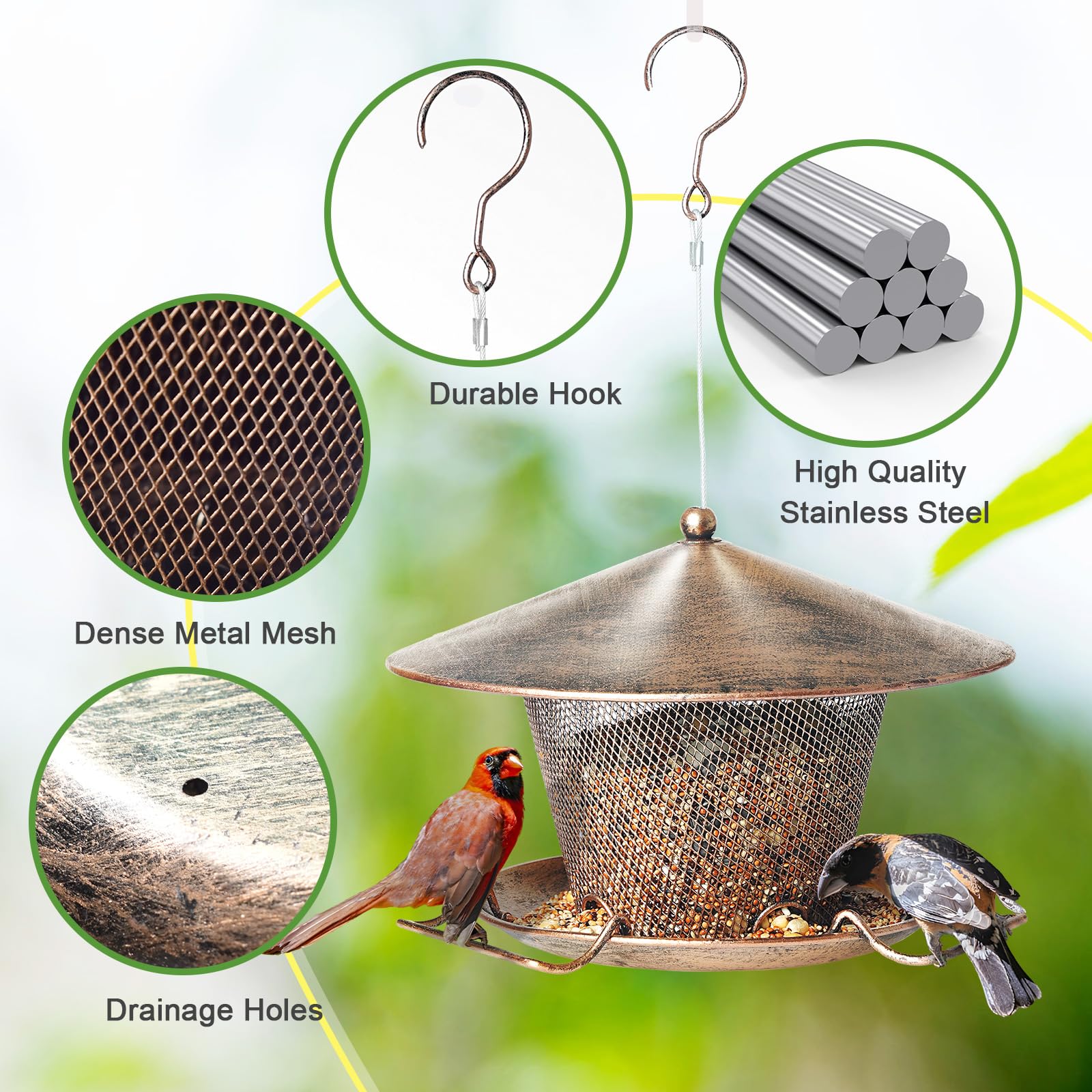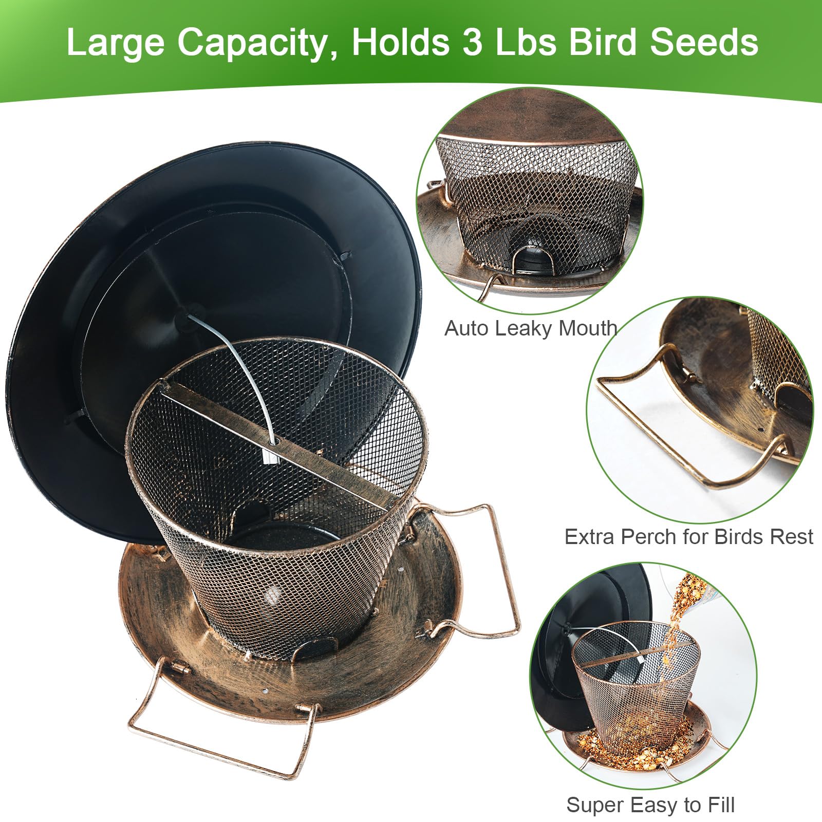 All-Metal Squirrel-Proof Bird Feeder - 3 LB Capacity with Oversized Weatherproof Roof