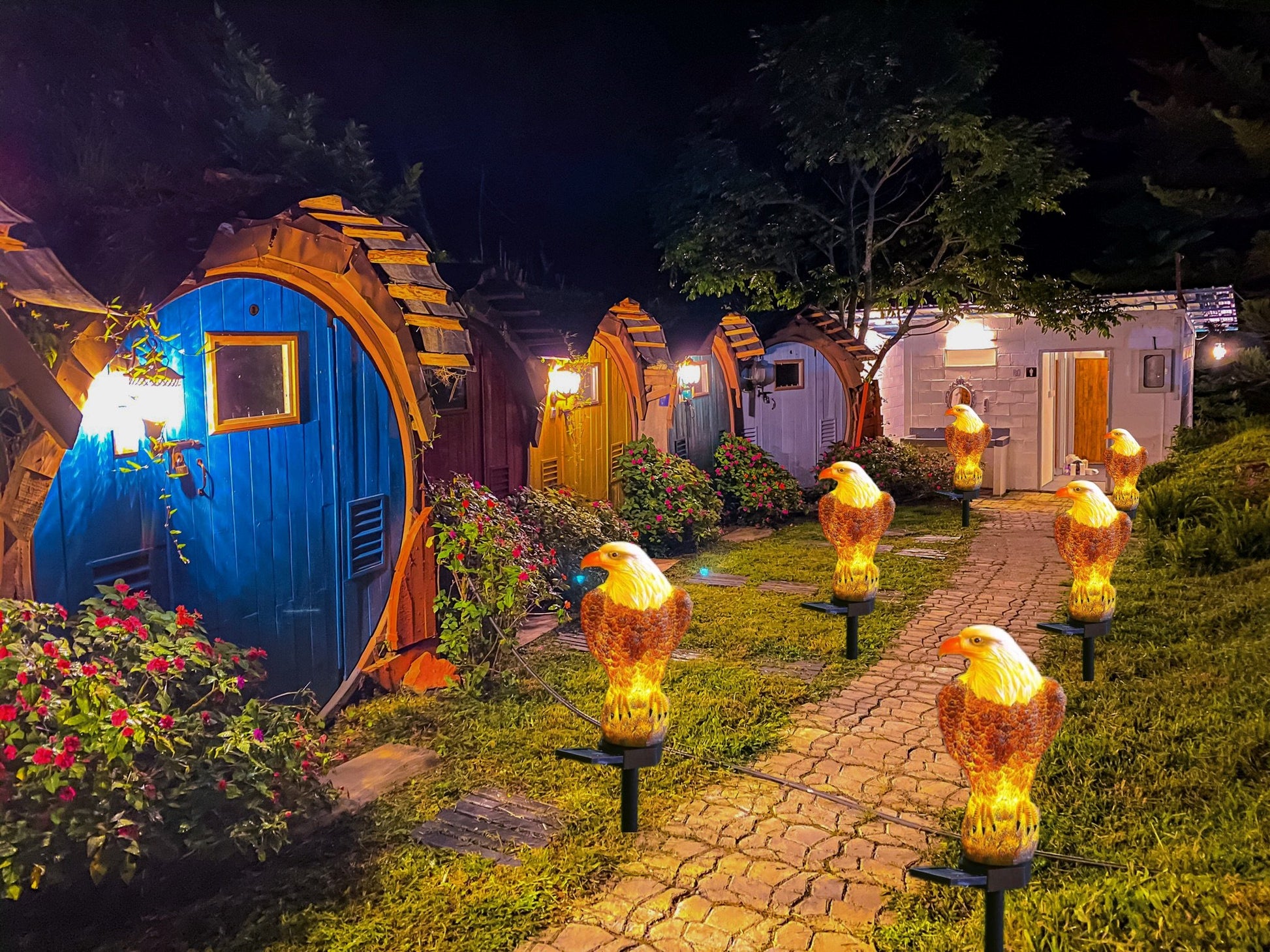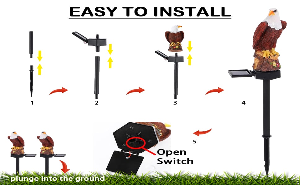 - The solar panel charges during the day, and the lights automatically turn on at dusk . No wiring is required to place them in a sunny spot .Detail eagle handicraft sculpture,in the daytime it as a garden statue decoration and in night time it will light up from inside body.