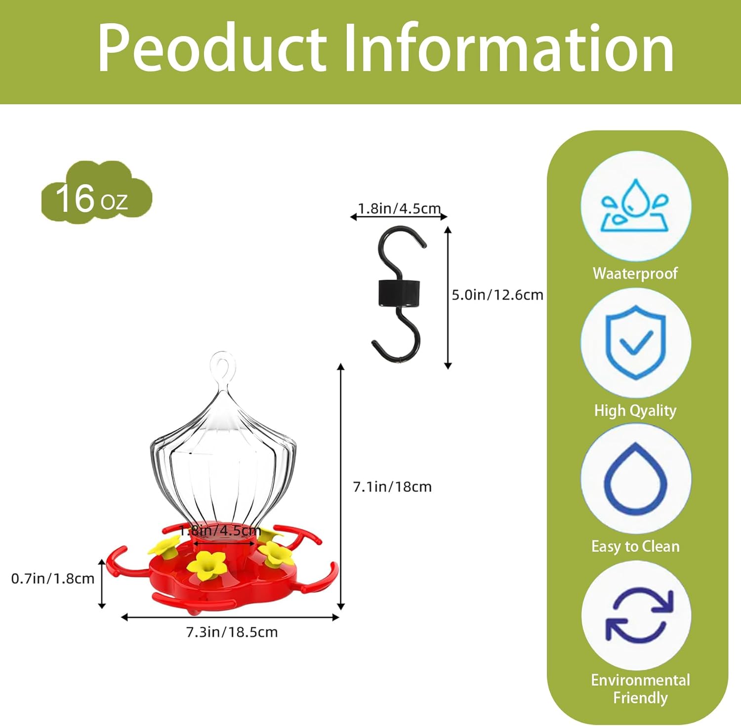 【Premium Acrylic Material】Crafted from lightweight yet struggle Acrylic, this hummingbird feeder for outdoors is crystal clear like glass but unbreakable and drop-resistant. Perfect for windy conditions, it ensures safety and durability without the risk of broken glass.