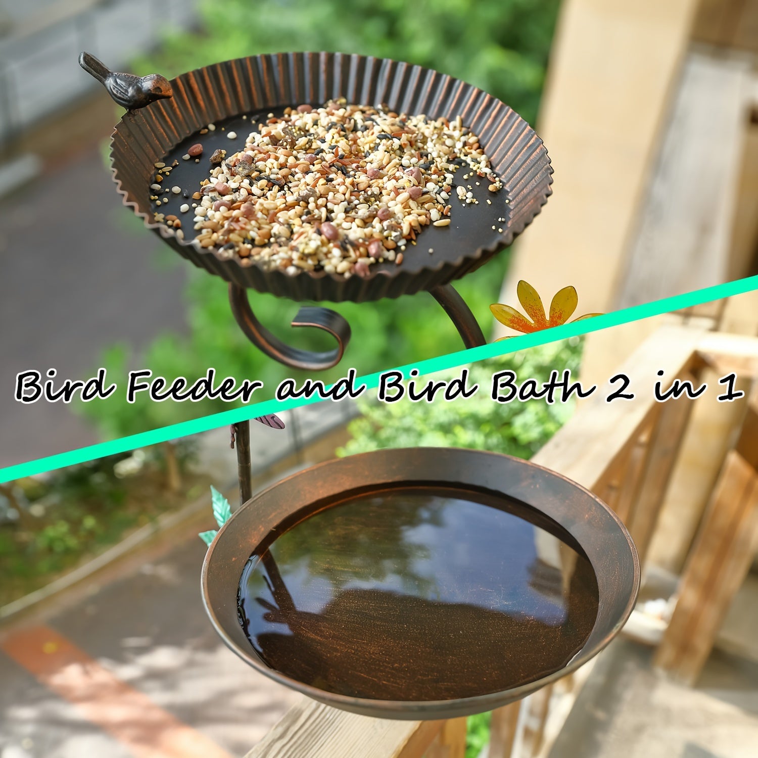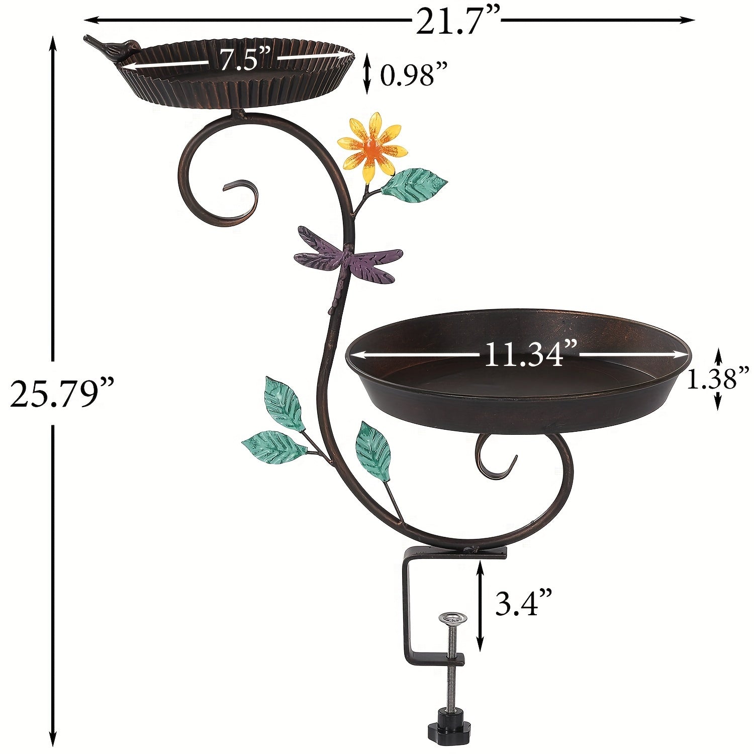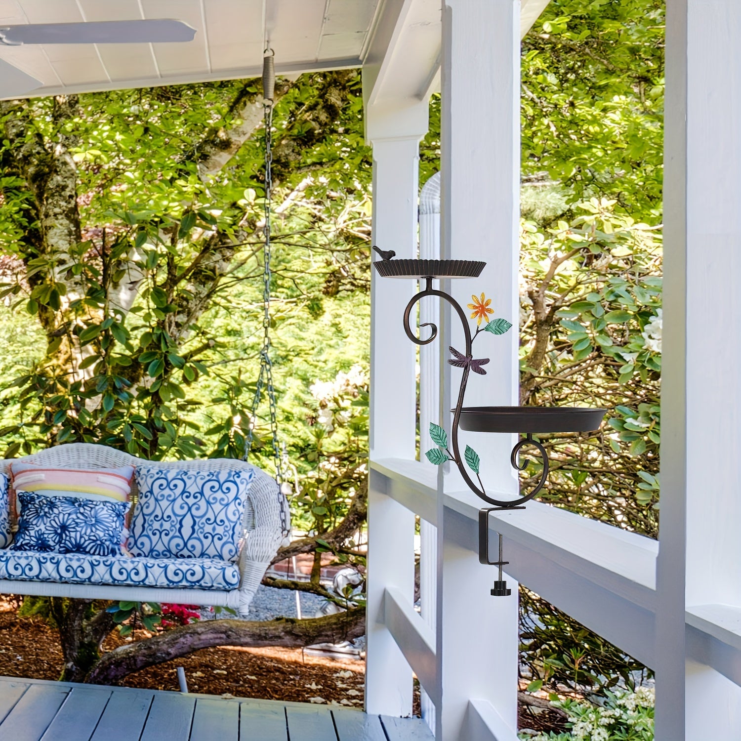 This versatile metal bird bath features an adjustable clamp for easy attachment to balcony railings, deck edges, or patio fences. The rust-resistant steel construction ensures durability, while the shallow basin provides a safe drinking and bathing spot for small birds.