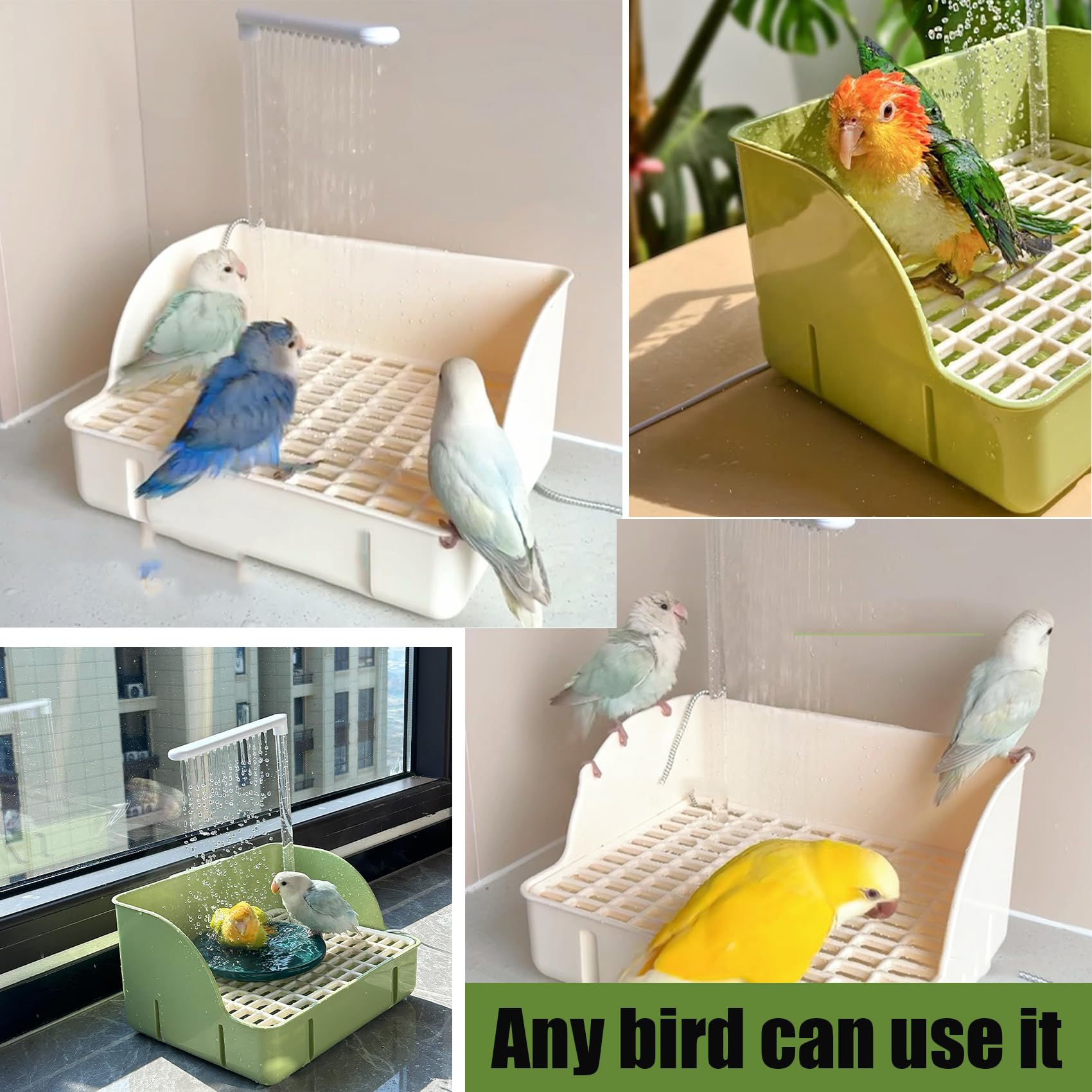 Fits Multiple Birds: Spacious design allows budgies, parrots, and more to bathe together—no frequent refilling required.