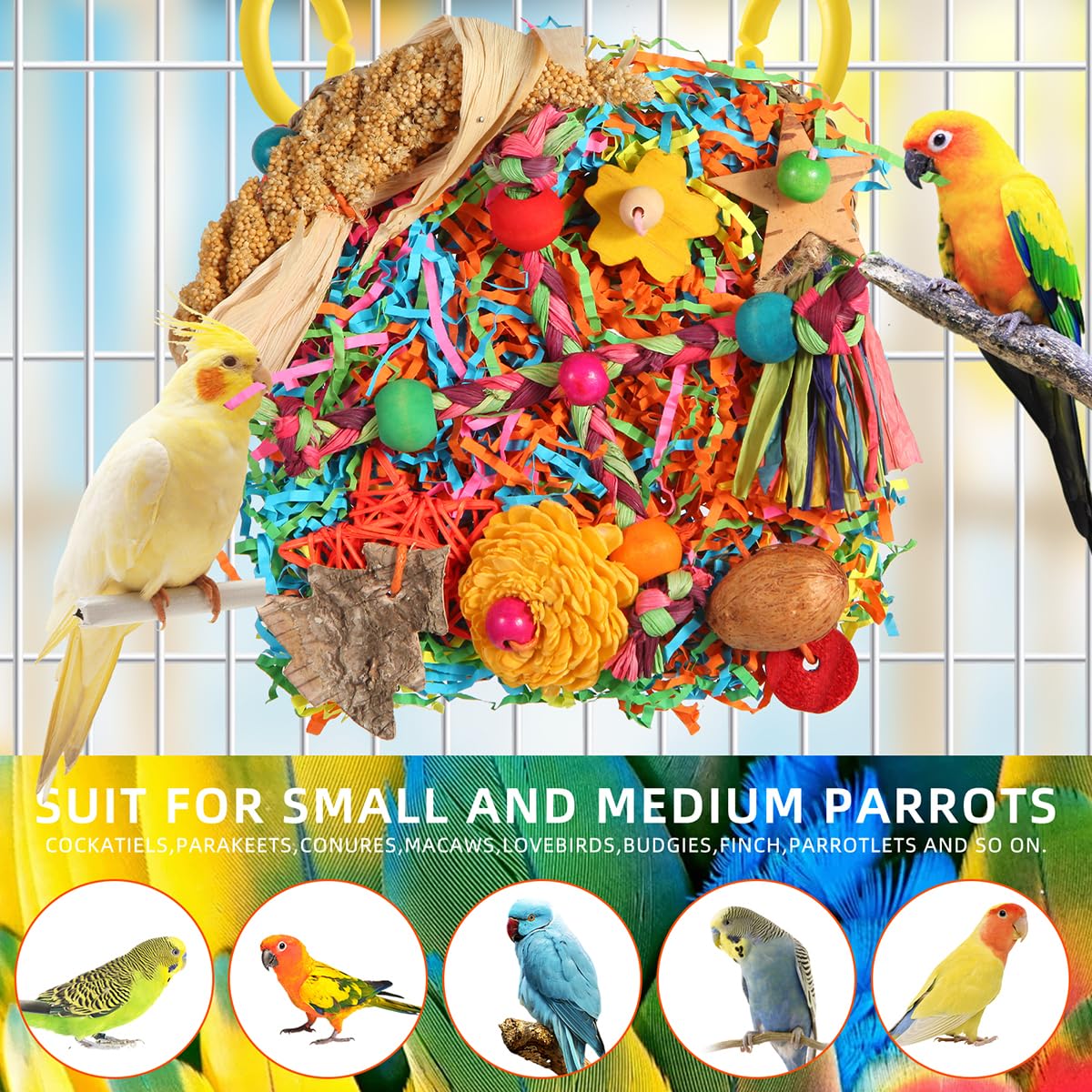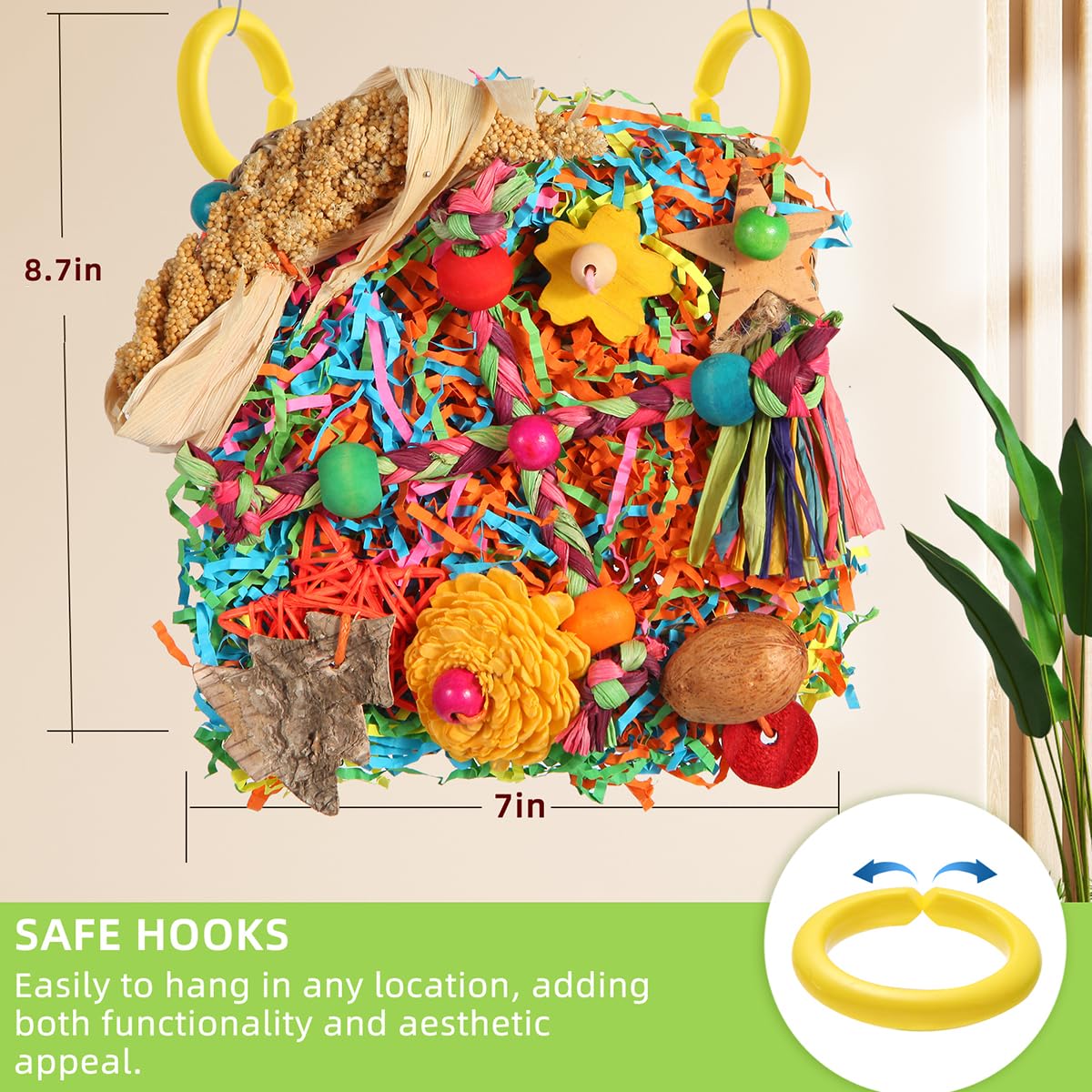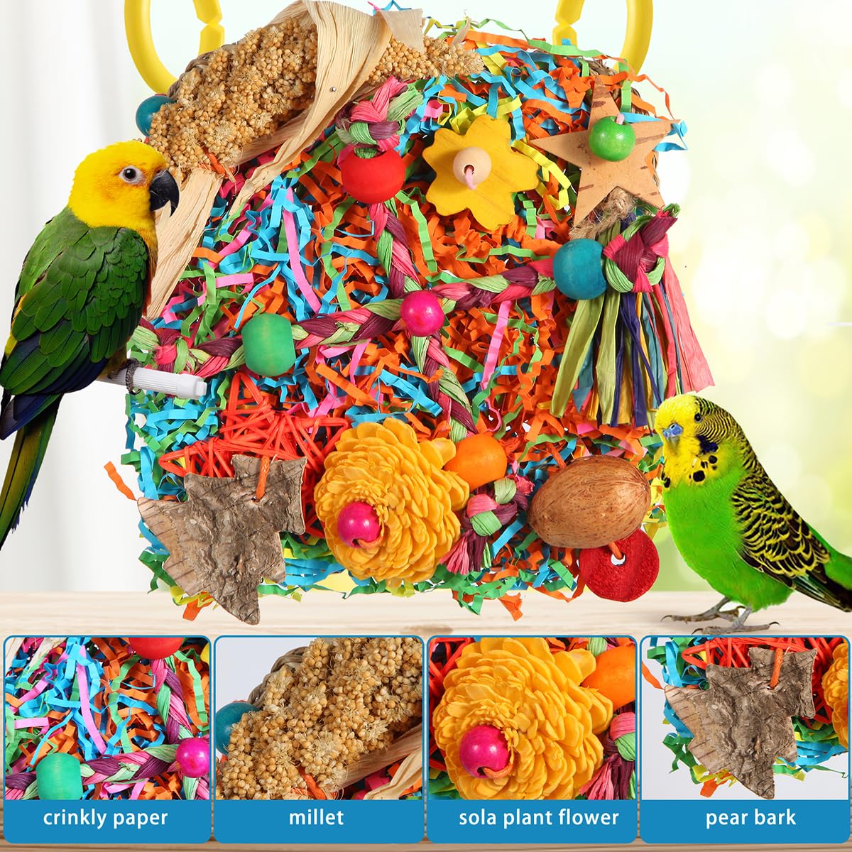 - KEEP YOUR BIRD ENGAGED: Our seagrass foraging wall provides endless fun! Your feathered friends will love shredding the paper, climbing the net, and chewing the toys. An ideal gift that will delight any bird.
