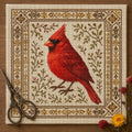 Featuring a bright red cardinal framed by elegant floral patterns, this kit combines peaceful crafting with timeless design, perfect for beginners and experienced stitchers alike.