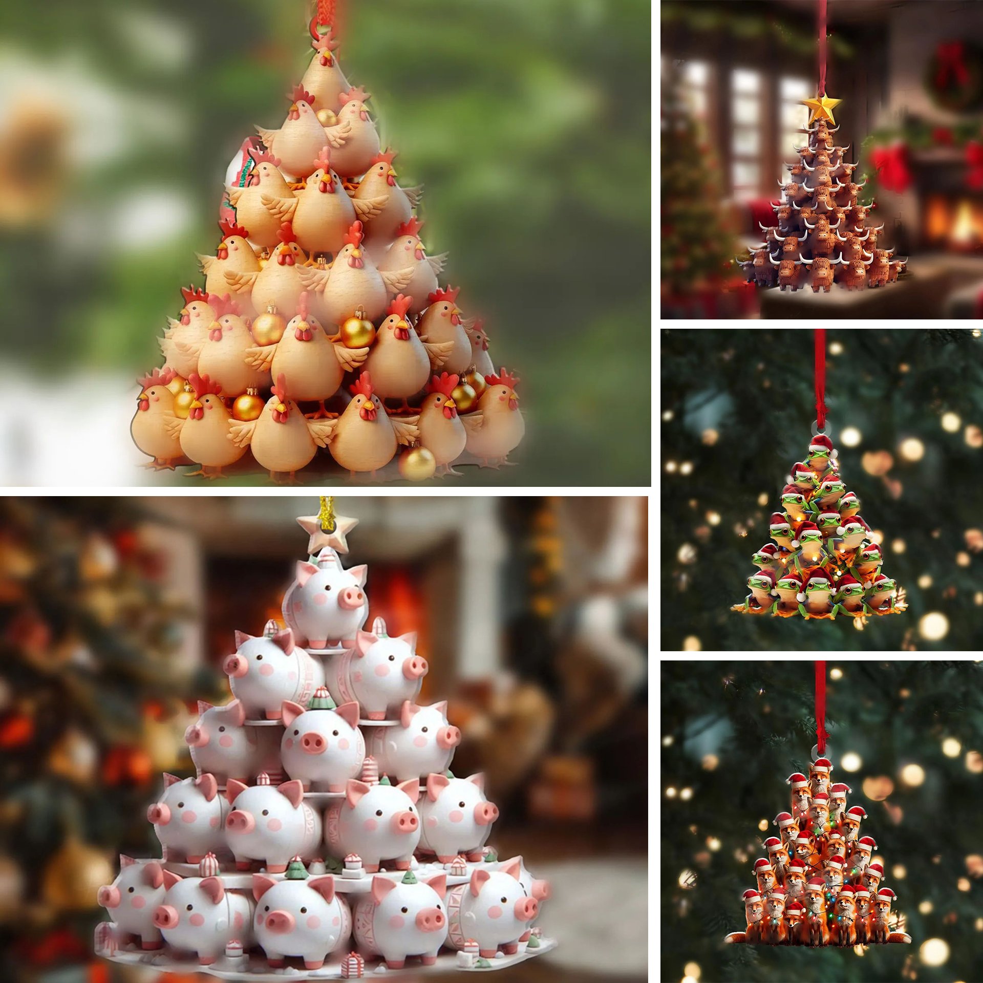 These unique decorations combine the beloved shape of a Christmas tree with adorable animal designs, bringing joy and whimsy to your holiday celebrations.