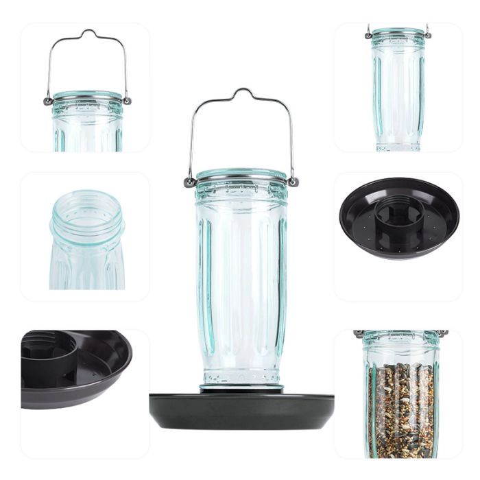 Introducing the Glass Waterer Bird Feeder, an attractive addition to your garden that combines beauty with functionality. This feeder features a durable metal base and a lovely glass container, providing a welcoming spot for a variety of birds. Enjoy the simple maintenance while offering your feathered friends a reliable water source.