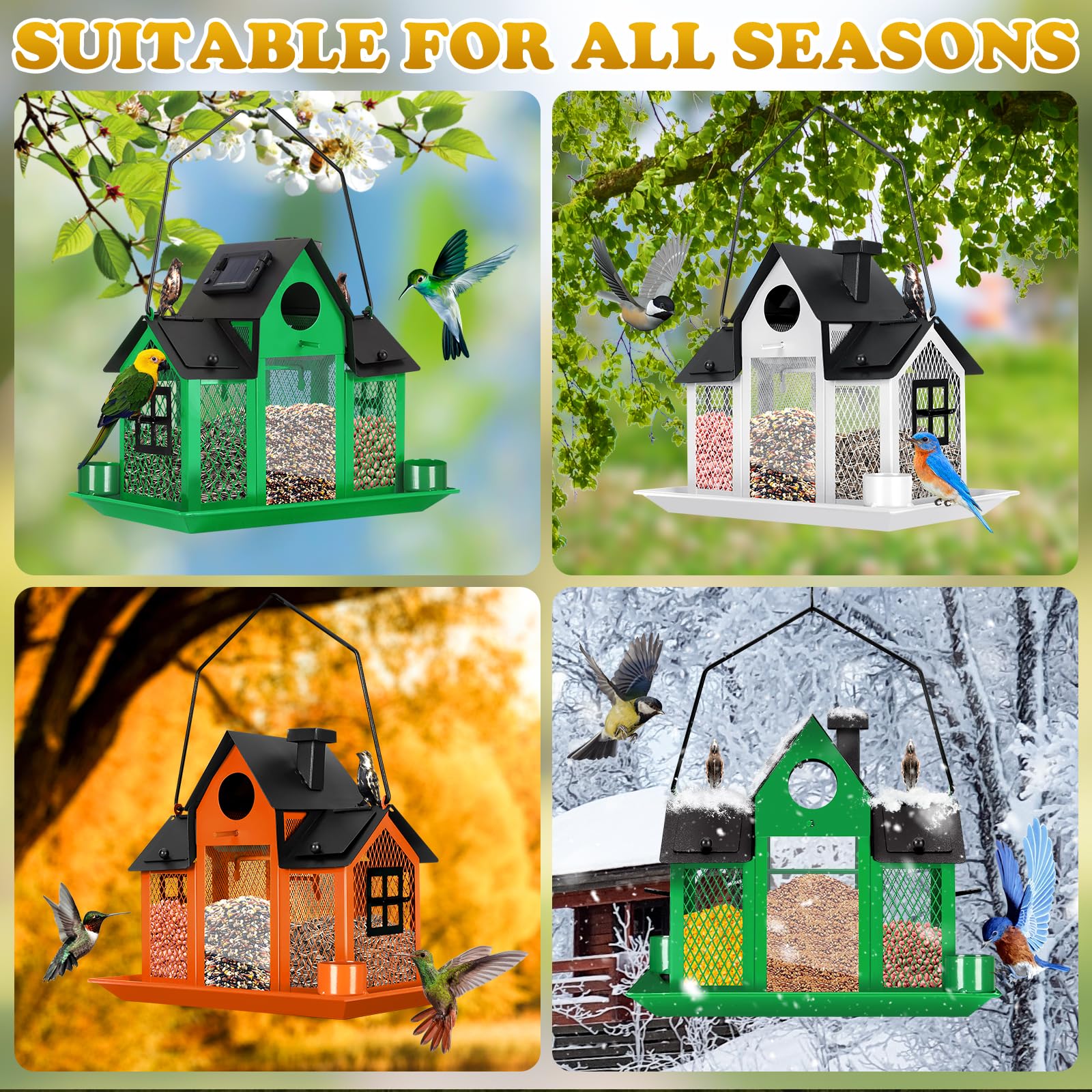 - Easy To Fill: This bird house a feeding window on the top left and right side, just open it to fill with birdseed, the bird feeder can hold up to 5 pounds of birdseed at a time.Perfect for attracting wild birds like goldfinch, cardinals, red finches, blue jays, sparrows, starlings, and more.