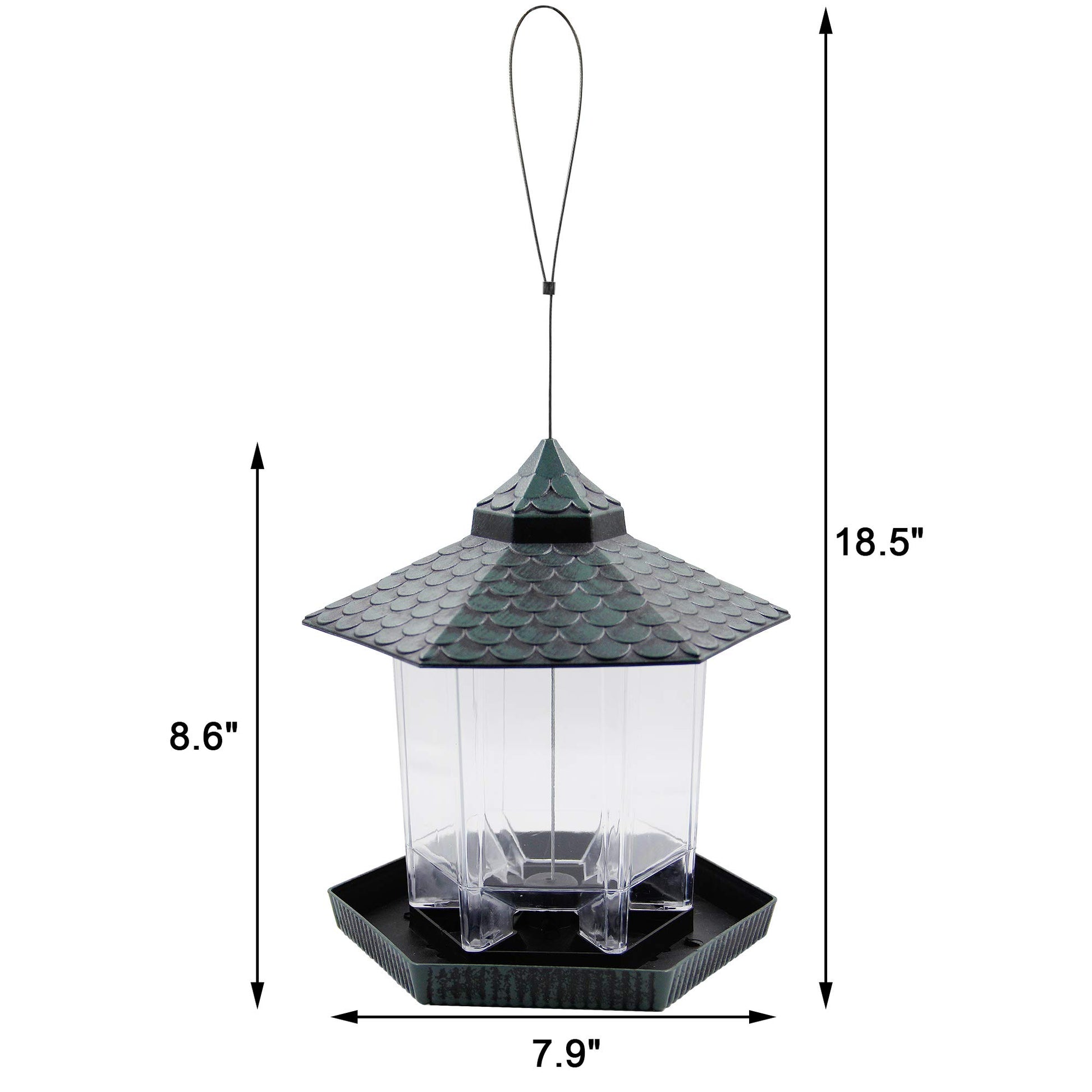 - CONSIDERATE DESIGN: Assembled and ready to hang, this bird feeder features an inclined roof to shelter birds from the elements. Its design ensures continuous seed replenishment, attracting various bird species.