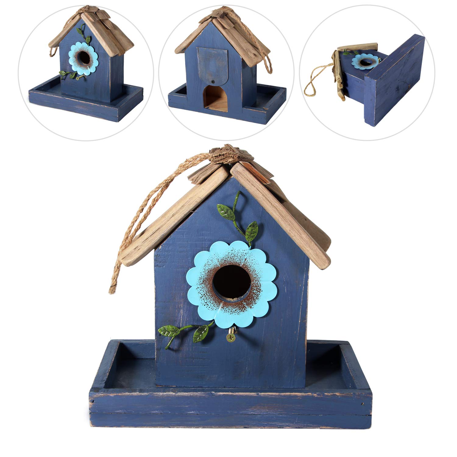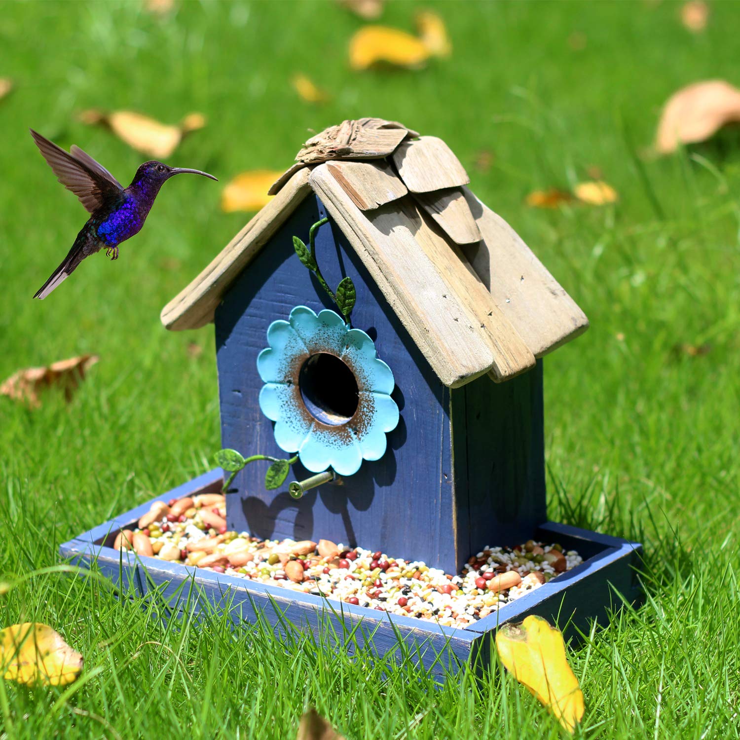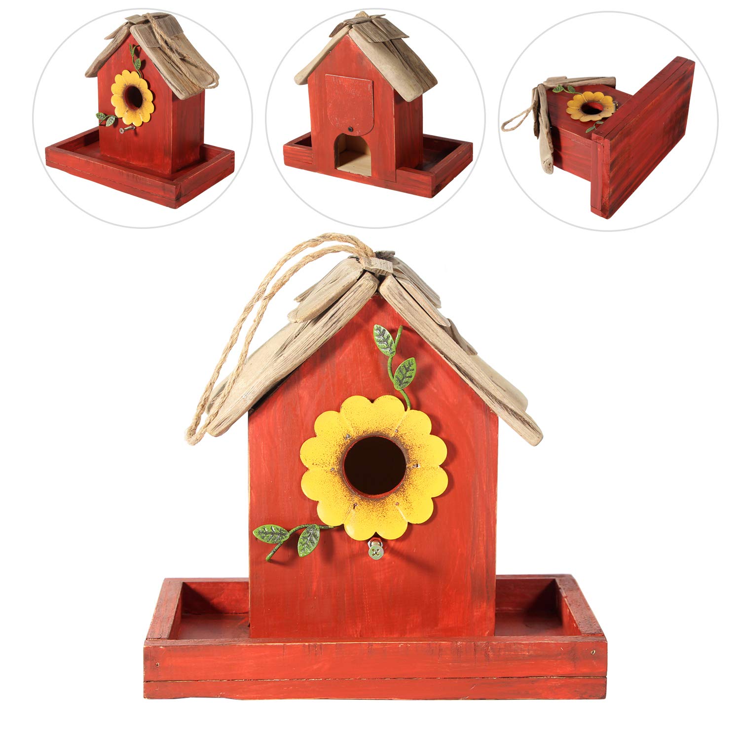 Beyond its function, this birdhouse is a beautiful piece of garden art. Its rustic charm, colorful design, and classic shingled roof add a touch of whimsy and style to your patio, yard, or garden, making it a decorative focal point that also supports local wildlife.