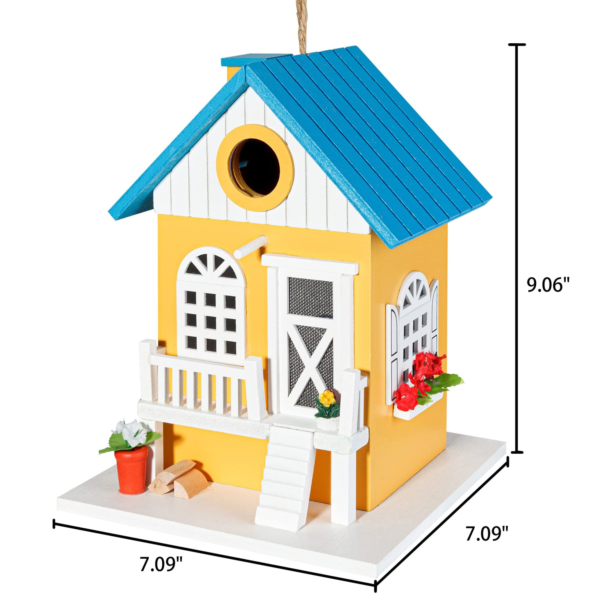 Hanging Colorful Bird House Feeder - Wooden Hummingbird Nest for Outdoors