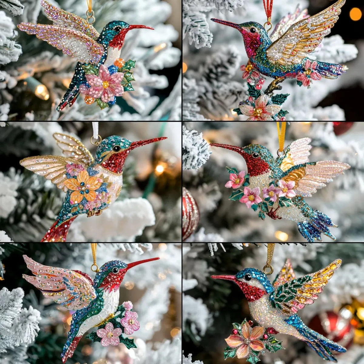 - 6 Unique Styles: Each hummingbird design features different colors, poses, and floral accents—perfect for collecting or gifting.