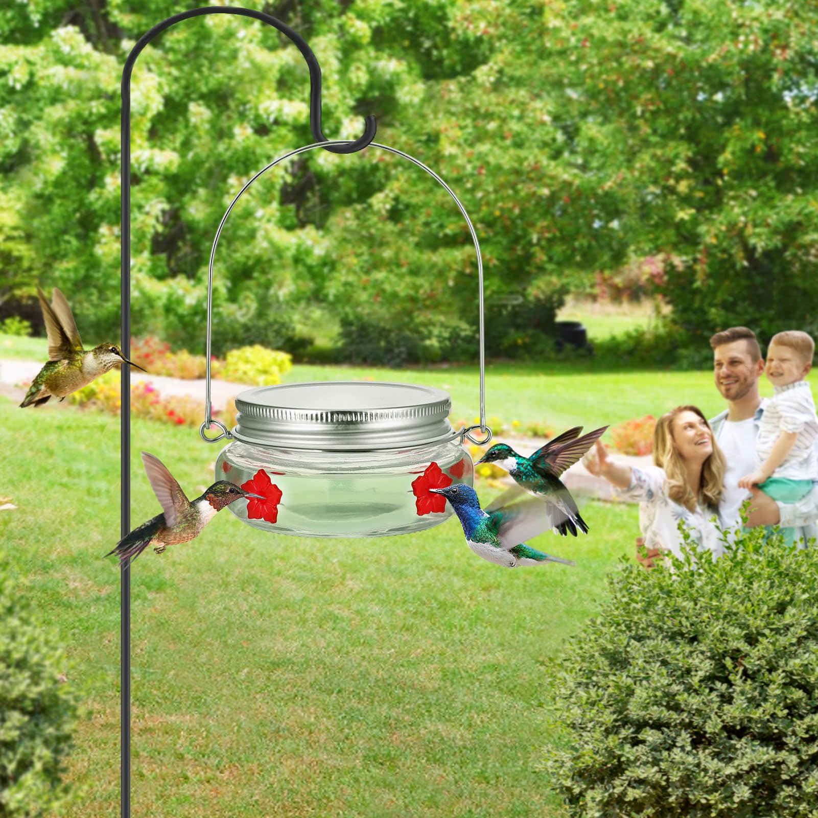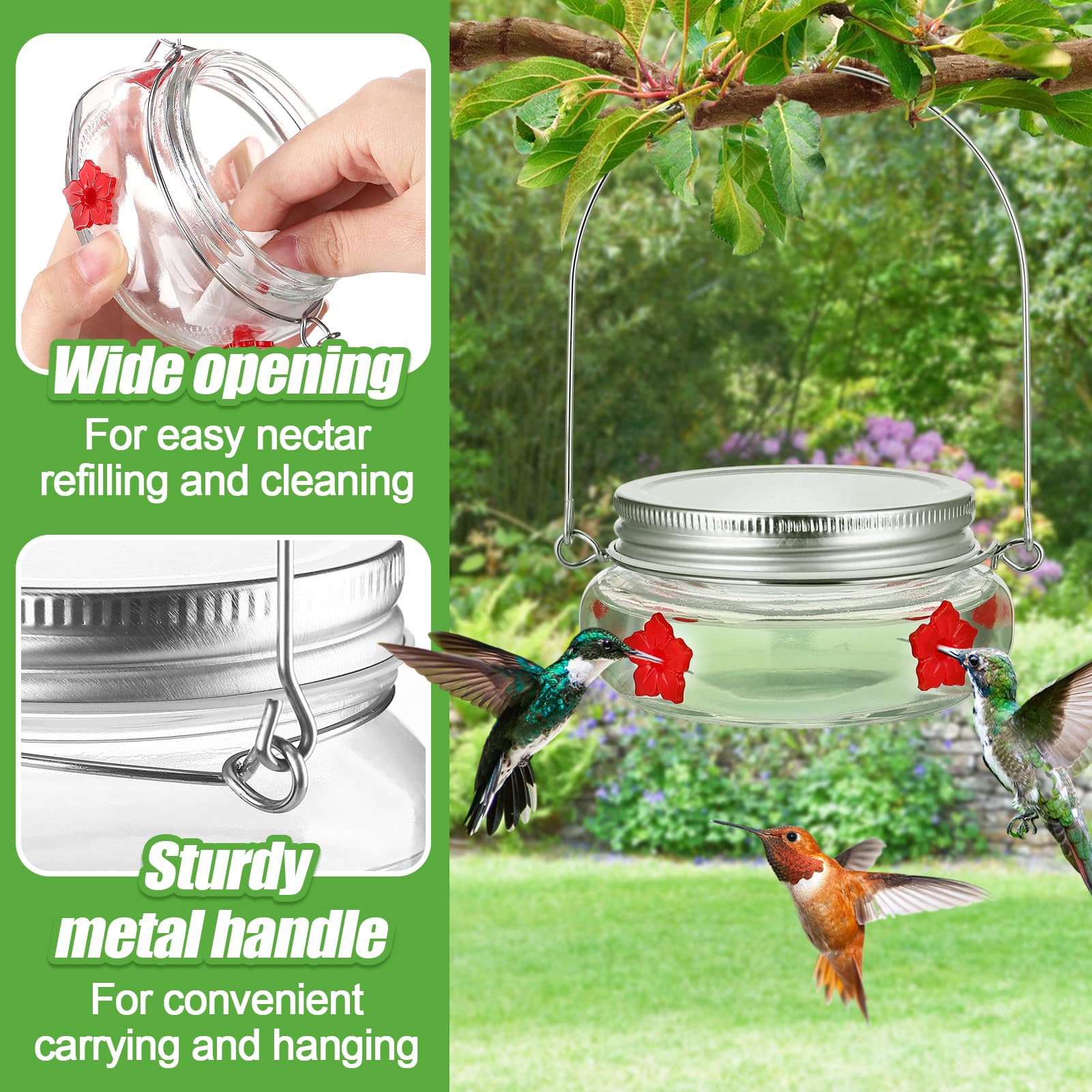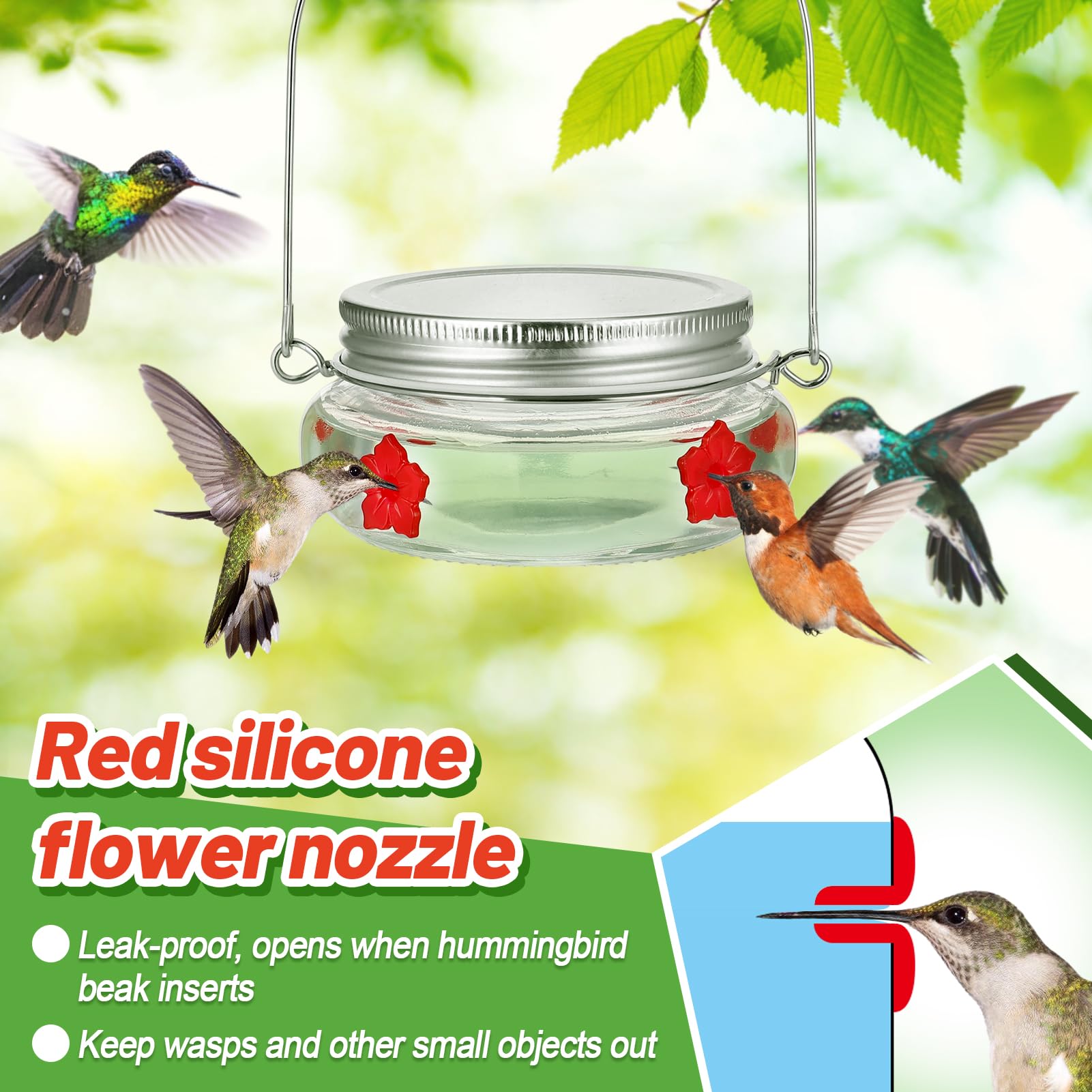 Hummingbird Feeder - Mason Jar Glass Feeder with 8 Flower-Shaped Ports, Wide Mouth