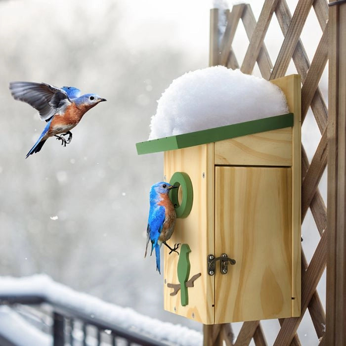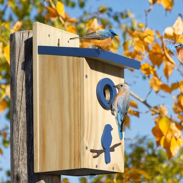 - Multi-bird attraction, designed for bluebirds, wrens, and chickadees.
