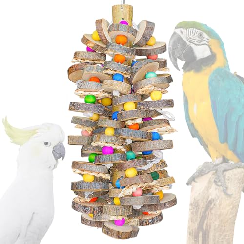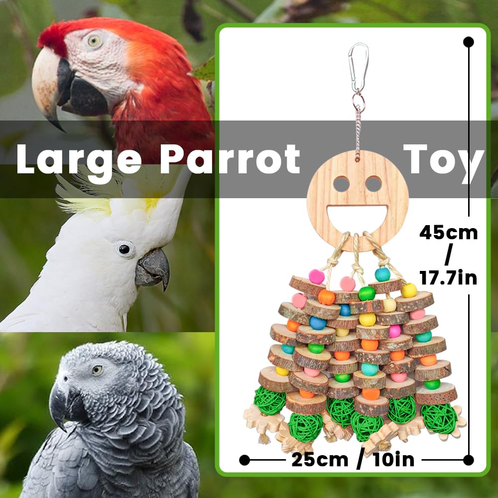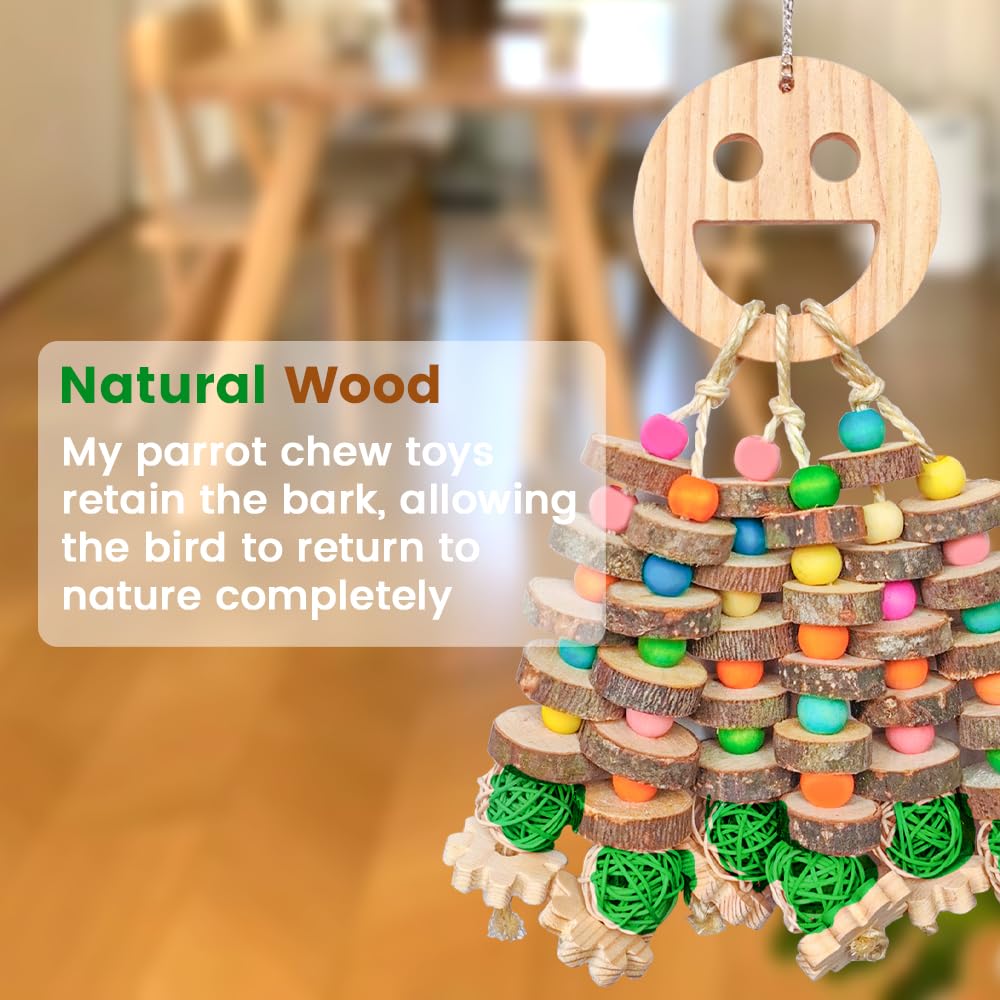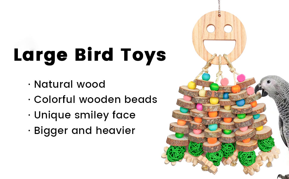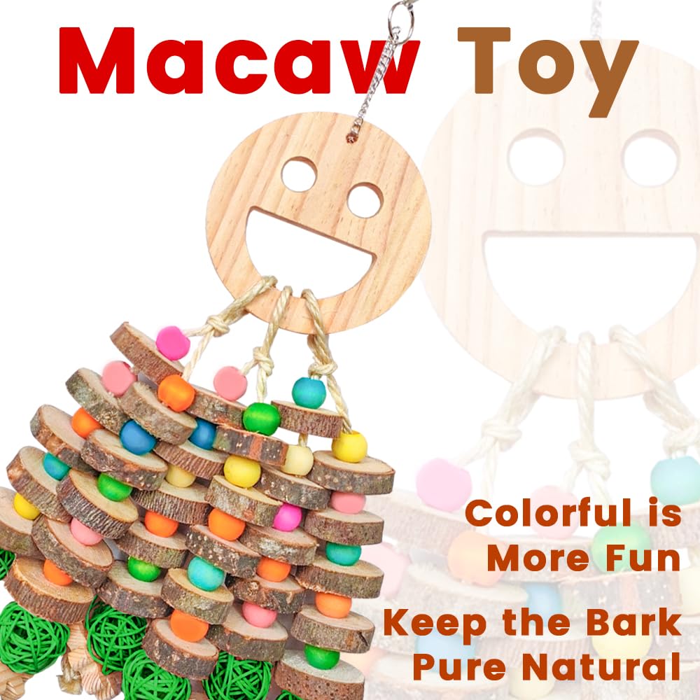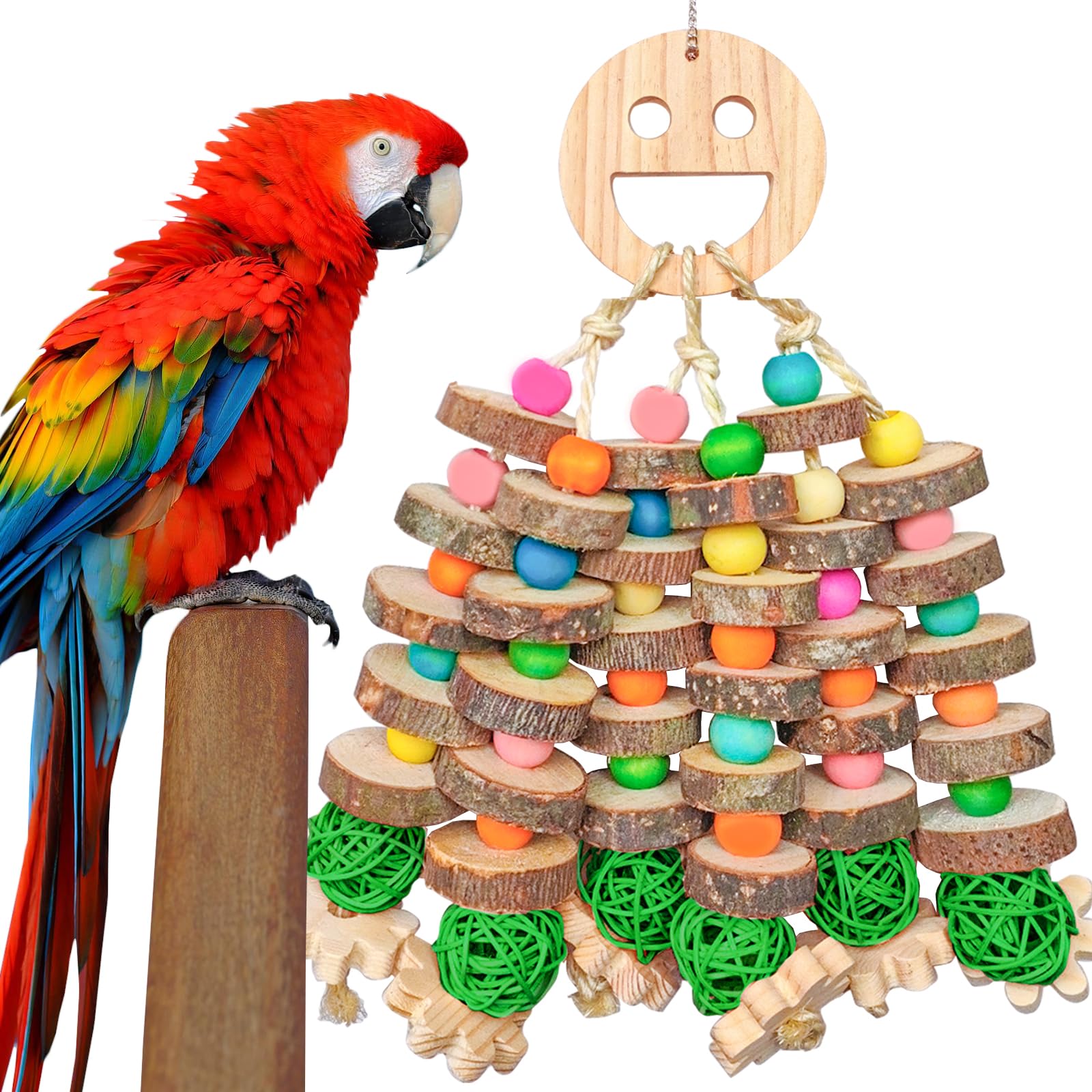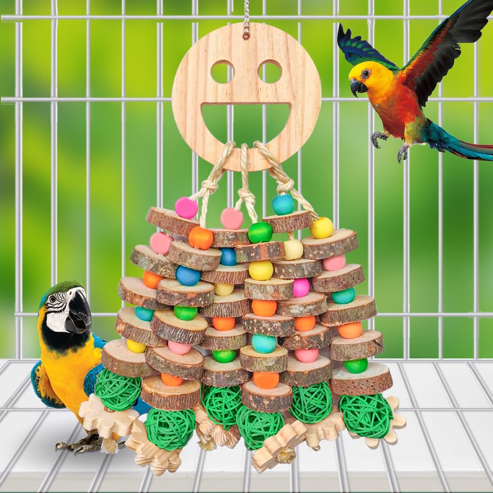 - Parrots will play with chewing toys for a long time. Great chewing parrot toys for medium birds provides dental care for your beloved bird. Bright and vivid color bird toy is a beautiful decor to hang into the cage or wall at home.