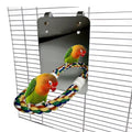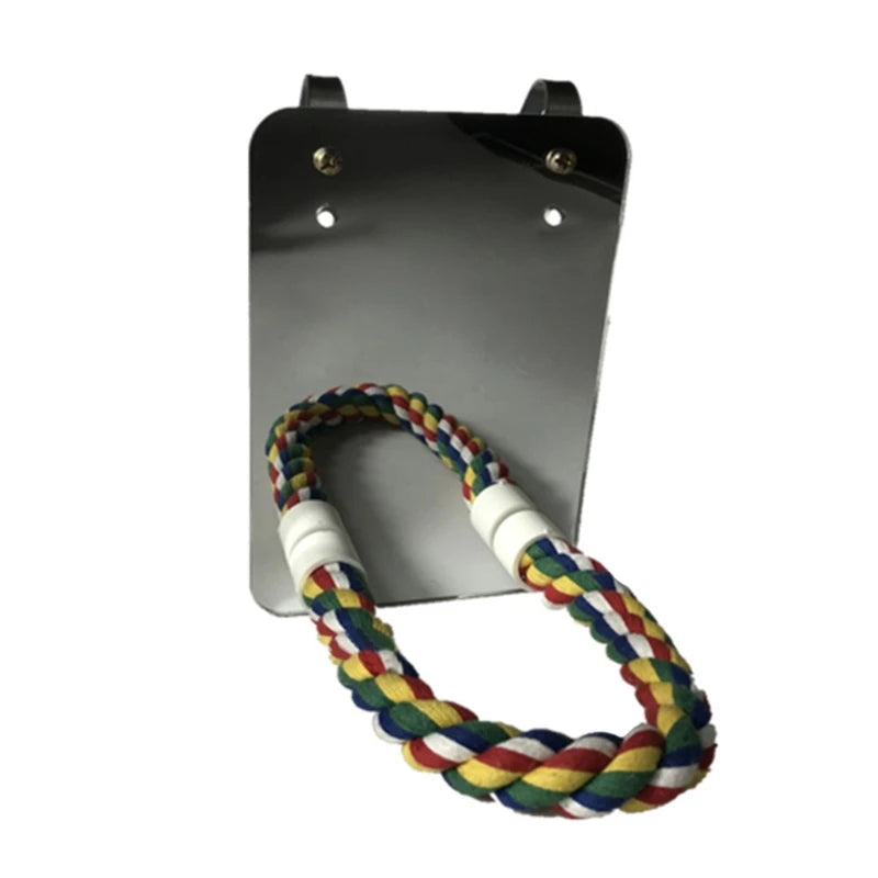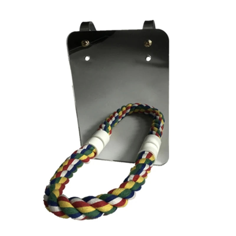 Parrots gnaw on the large mirror cotton rope standing poles mirror toy, providing opportunities for entertainment and self appreciation.