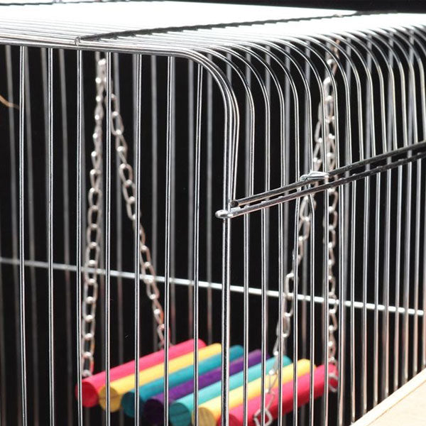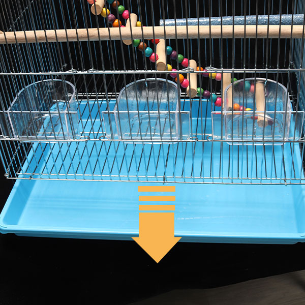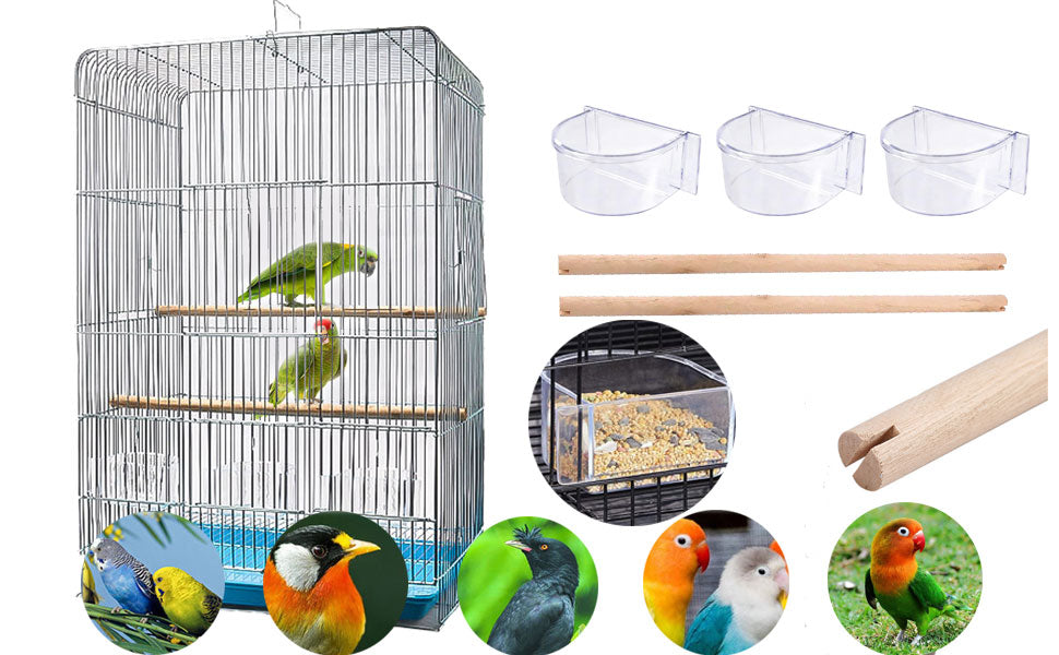 - Birdcages accessories: 3 plastic cups for food and water, 2 wooden stand for resting, 1 tray for bird waste. (Can be matched with other accessories, such as swings, feeders, etc.)