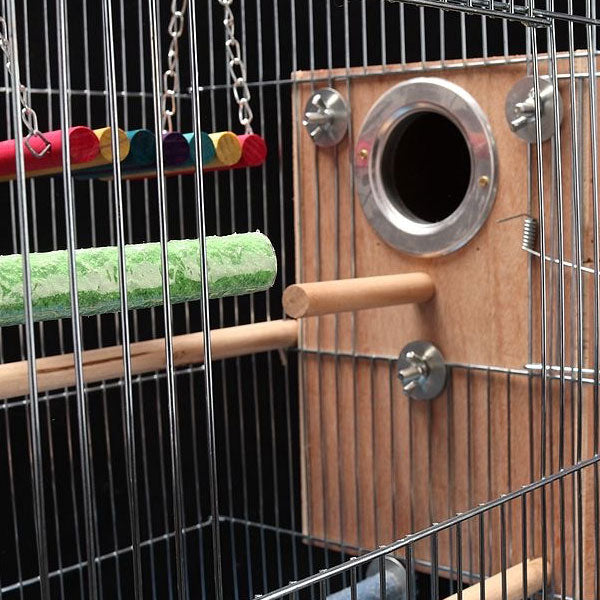 - Features: Parrot center cage a large door pull-up design to prevent your smart little bird from opening the cage door. There are spring loaded doors on both sides to hold the breeding boxes.