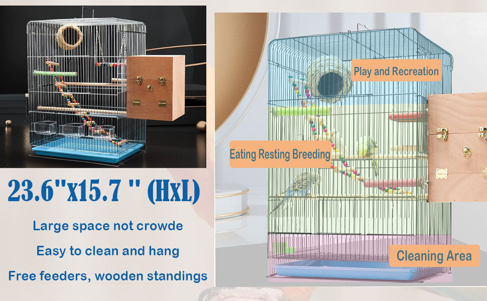 - 23.6''x 15.7''x 11.8'' / 60*40*30 cm: Small parrot bird cage is suitable for both home and outdoor use, and travel cage also useful as pet stores and pet hospitals, and for decoration.