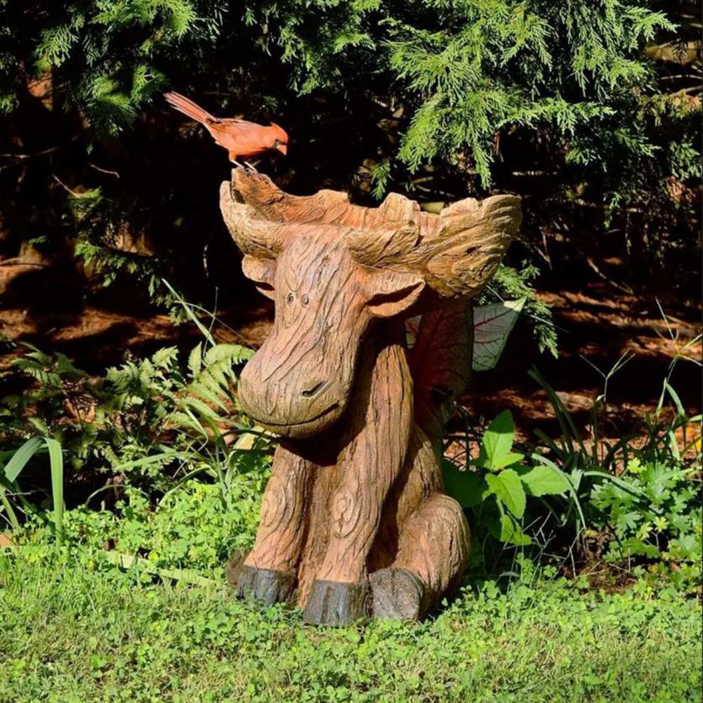 - Beautiful and Durable Design: This moose birdbath is designed with an animal appearance; it also has a flat bottom, making it light and easy to move; turning your garden or courtyard into an elegant and charming space. This birdbath is made of high-quality resin material and is covered with a coating to withstand rain, water, and other weather without dents, cracks, or breaks.