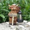 This decorative statue features realistic fur texture and natural colors, capturing the unique charm of Highland cows.