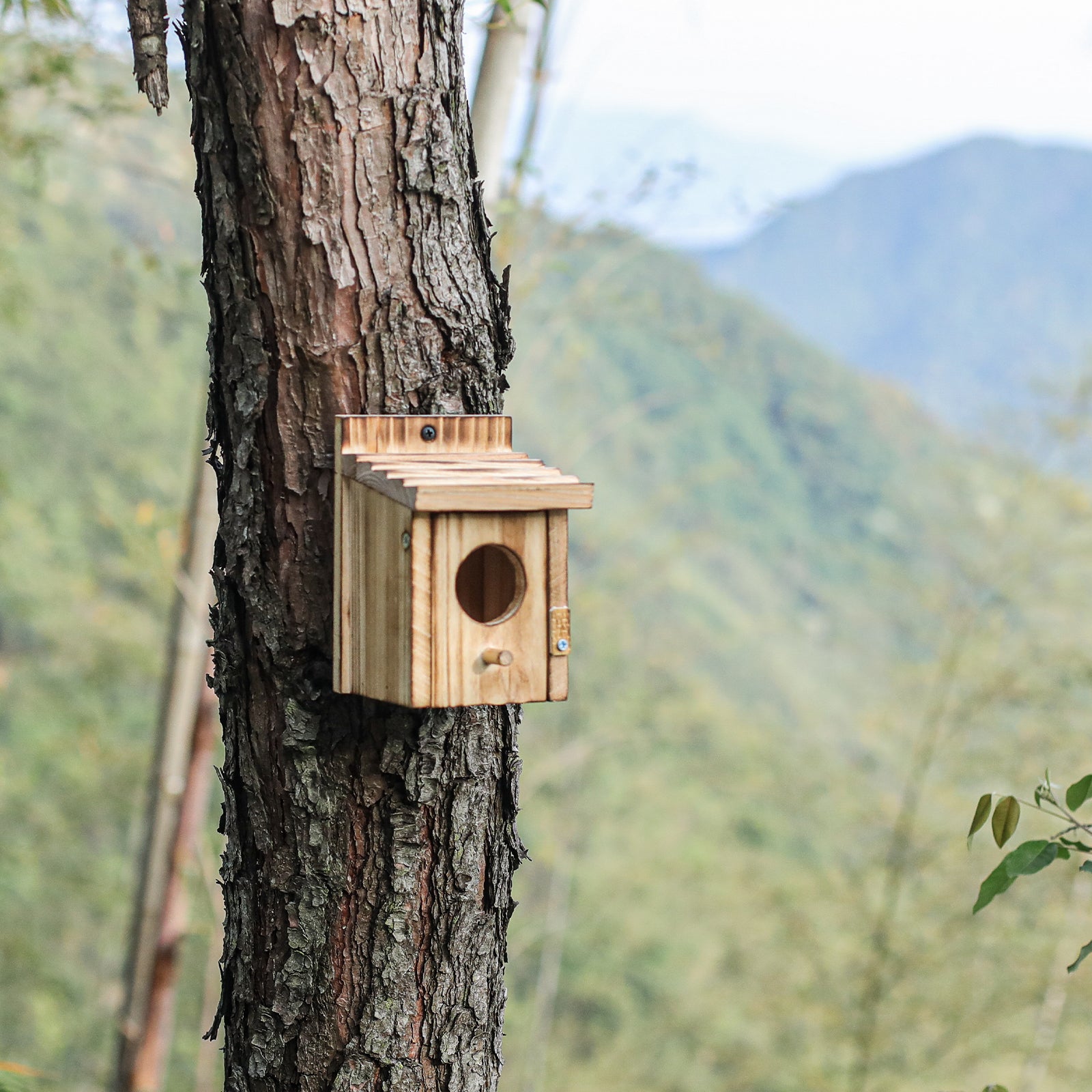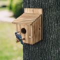 Wooden Bird House with Pole - Outdoor Hanging Nest Box for Finches, Bluebirds & Cardinals